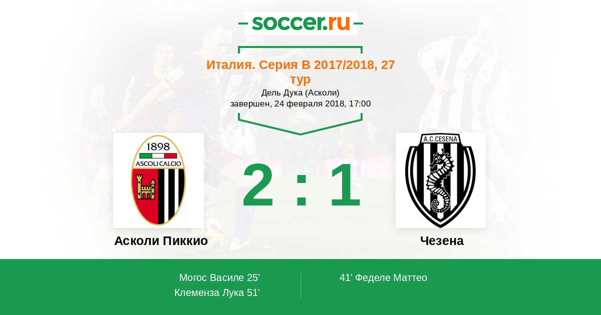 Асколи Пиккио - Чезена: обзор матча 24 февраля 2018