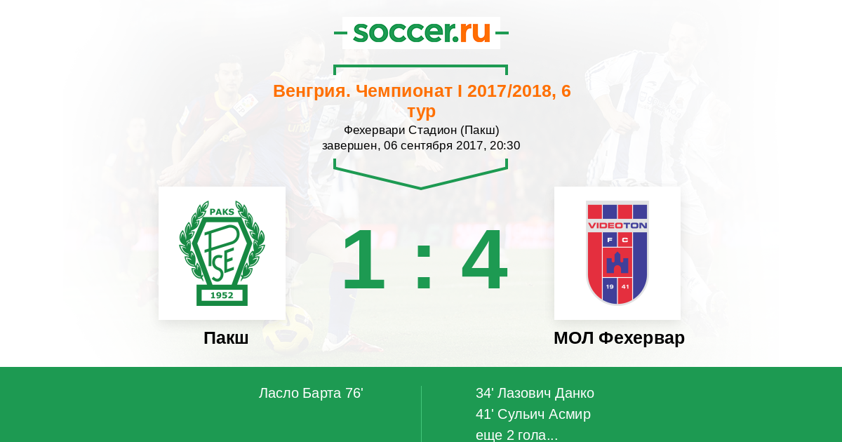Пакш - Видеотон: обзор матча 6 сентября 2017