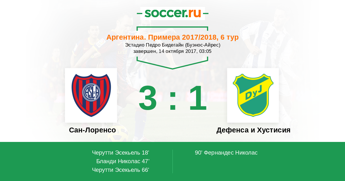 Сан-Лоренсо - Дефенса и Хустисия: обзор матча 14 октября 2017