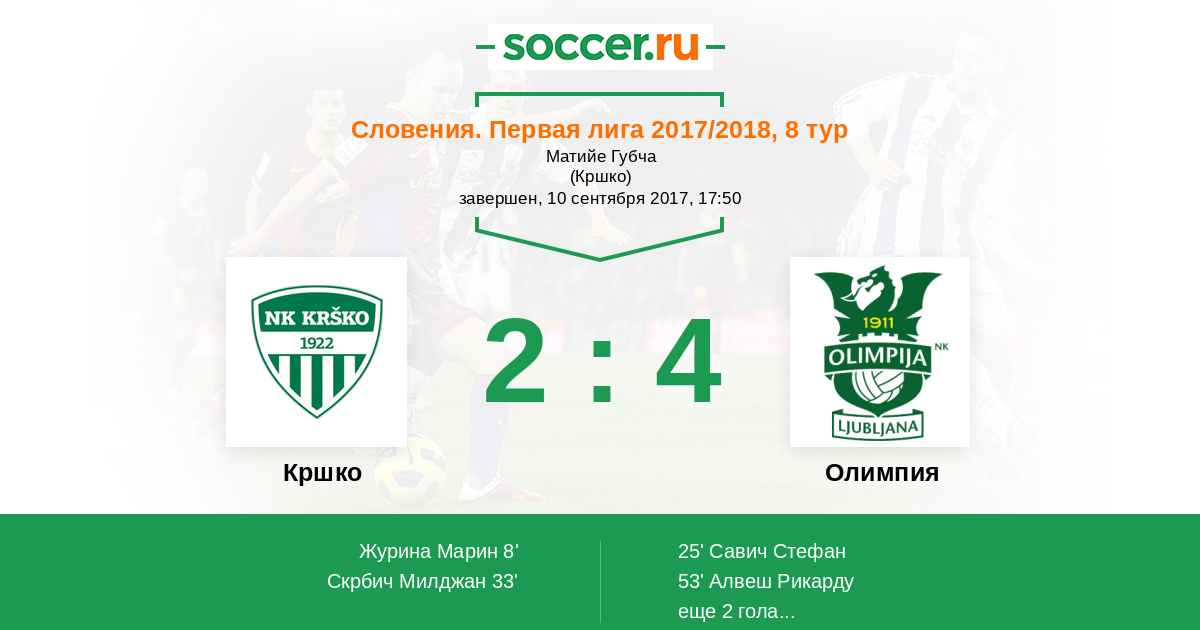 Кршко - Олимпия: обзор матча 10 сентября 2017