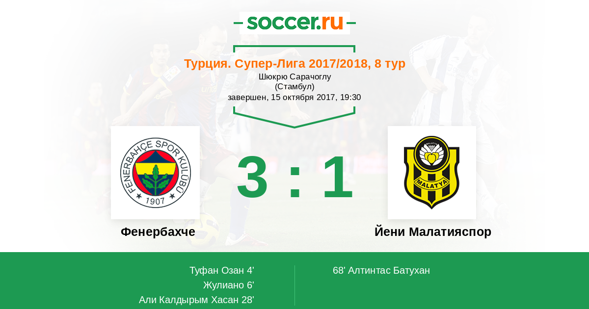 Фенербахче - Йени Малатияспор: обзор матча 15 октября 2017