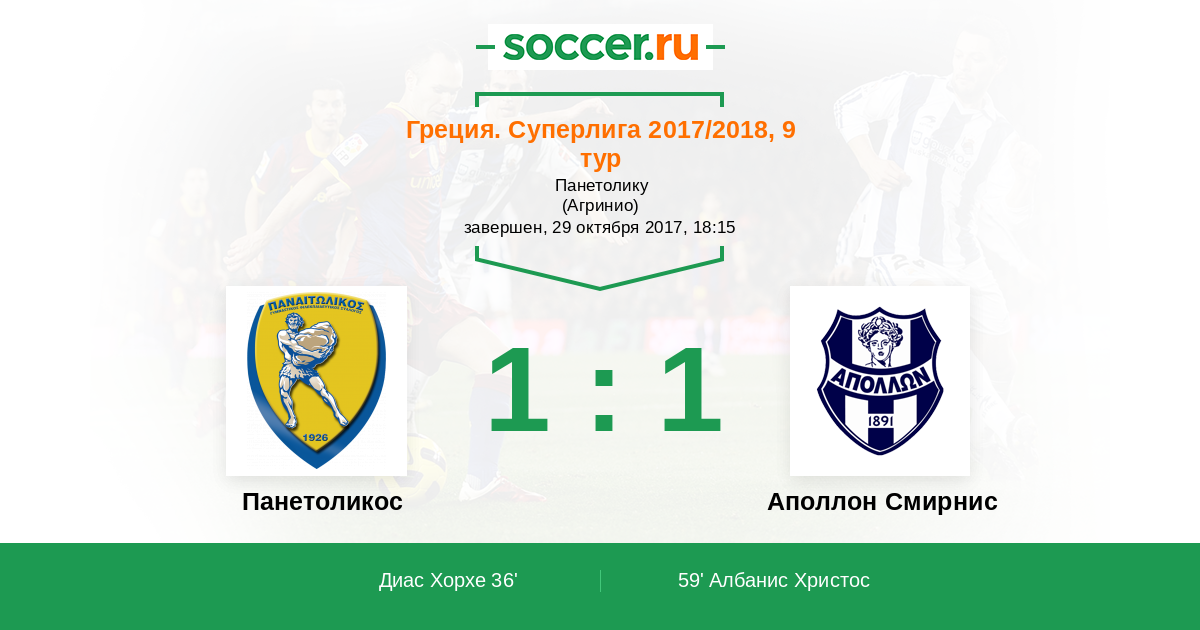 Панетоликос - Аполлон Смирнис: обзор матча 29 октября 2017