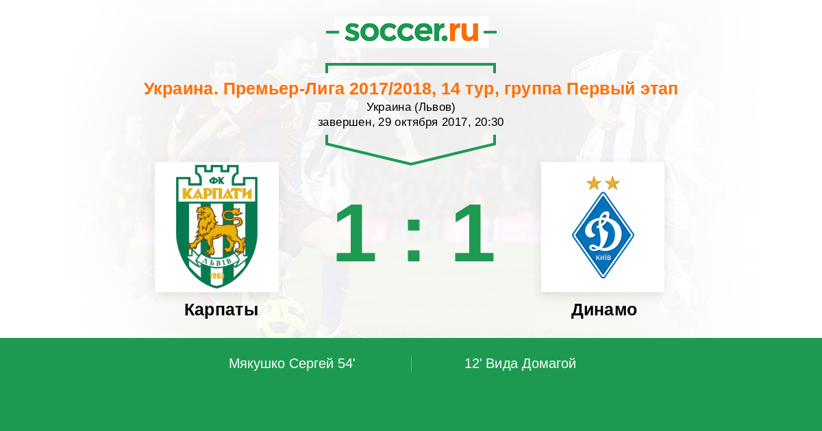 Карпаты - Динамо: обзор матча 29 октября 2017