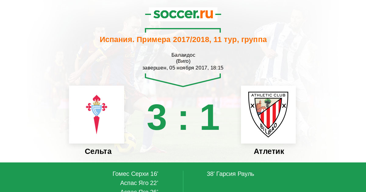 Сельта - Атлетик: обзор матча 5 ноября 2017