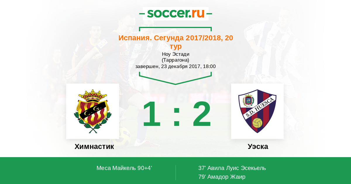 Химнастик - Уэска: обзор матча 23 декабря 2017