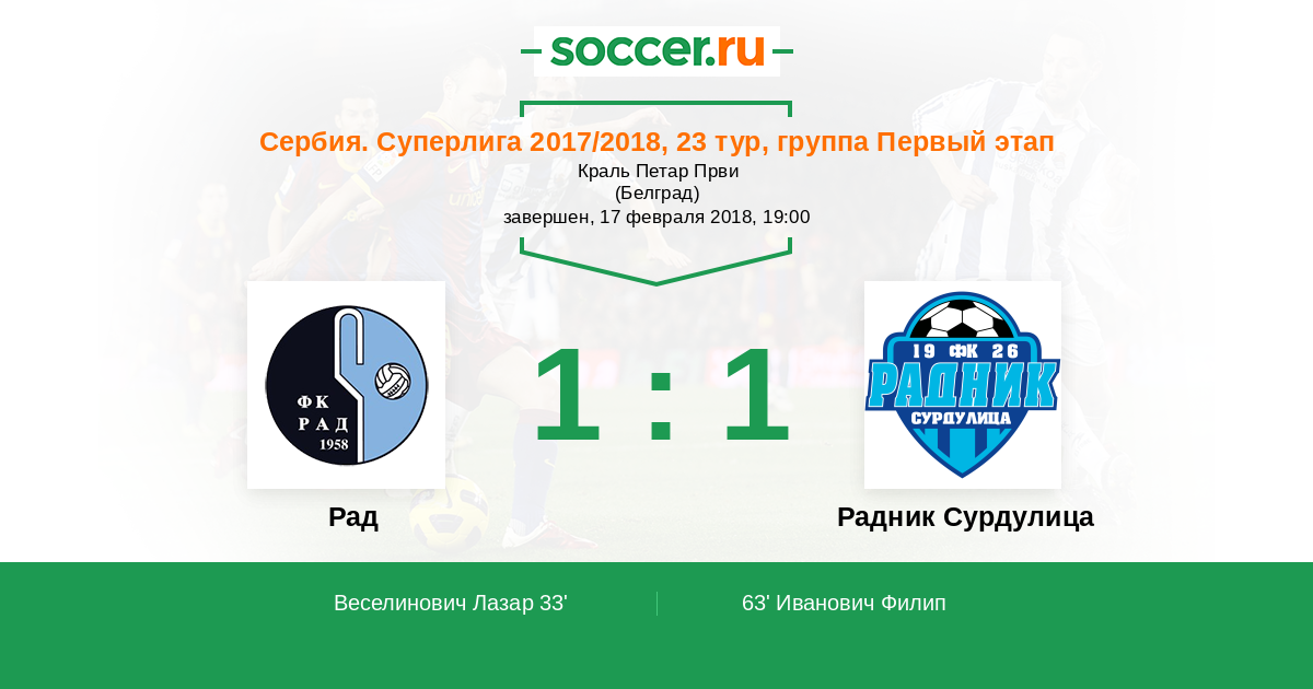 Рад - Радник Сурдулица: обзор матча 17 февраля 2018