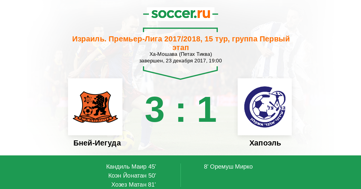 Бней-Иегуда - Хапоэль: обзор матча 23 декабря 2017