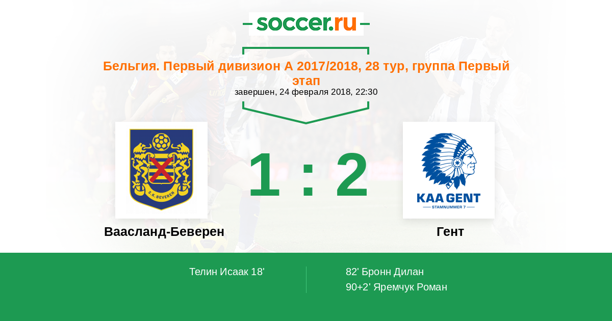 Ваасланд-Беверен - Гент: обзор матча 24 февраля 2018