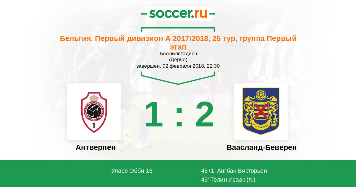 Антверпен | 30 | 10 | 11 | 9 | 11 | 38:40 | 41 |