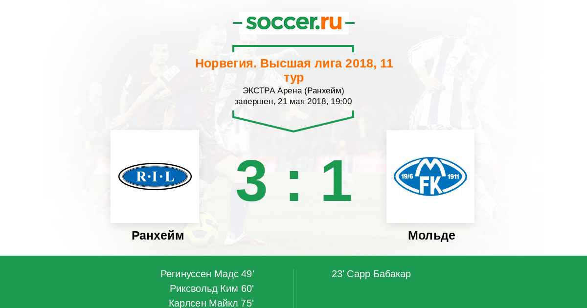 Ранхейм - Мольде: обзор матча 21 мая 2018