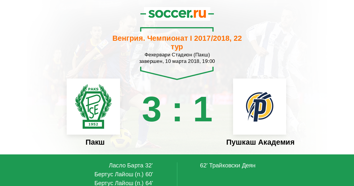 Пакш - Пушкаш Академия: обзор матча 10 марта 2018