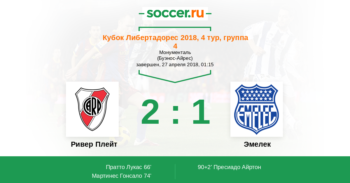 Ривер Плейт | 6 | 3 | 3 | 0 | 4 | 6:3 | 12 |