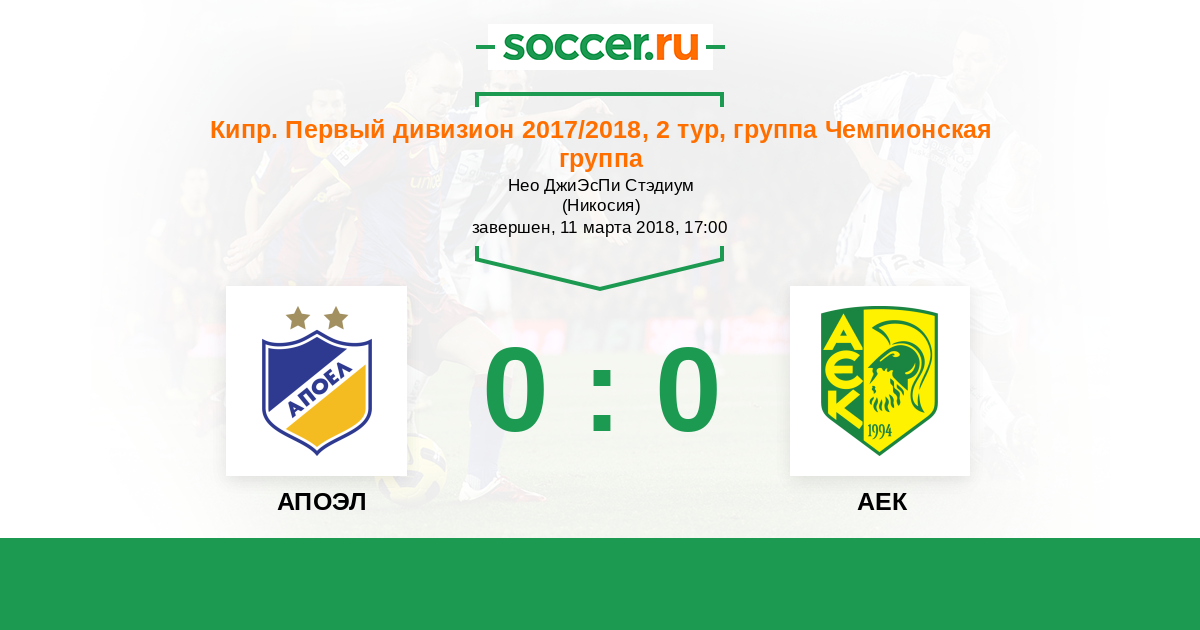 АПОЭЛ - АЕК: обзор матча 11 марта 2018