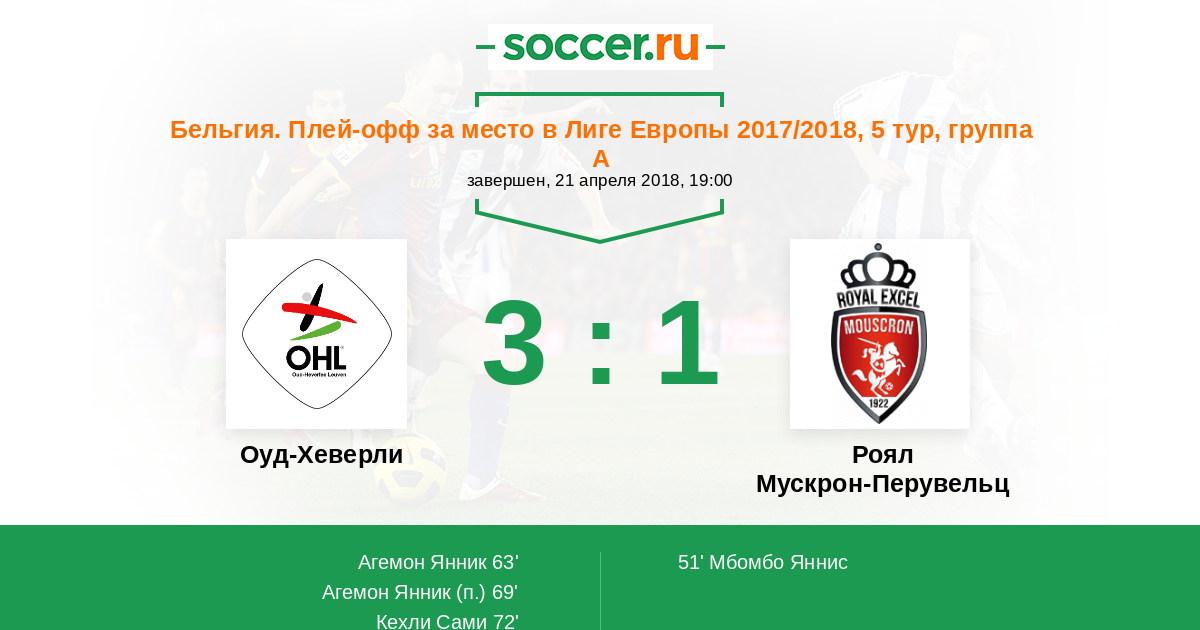 Оуд-Хеверли - Роял Мускрон-Перувельц: обзор матча 21 апреля 2018