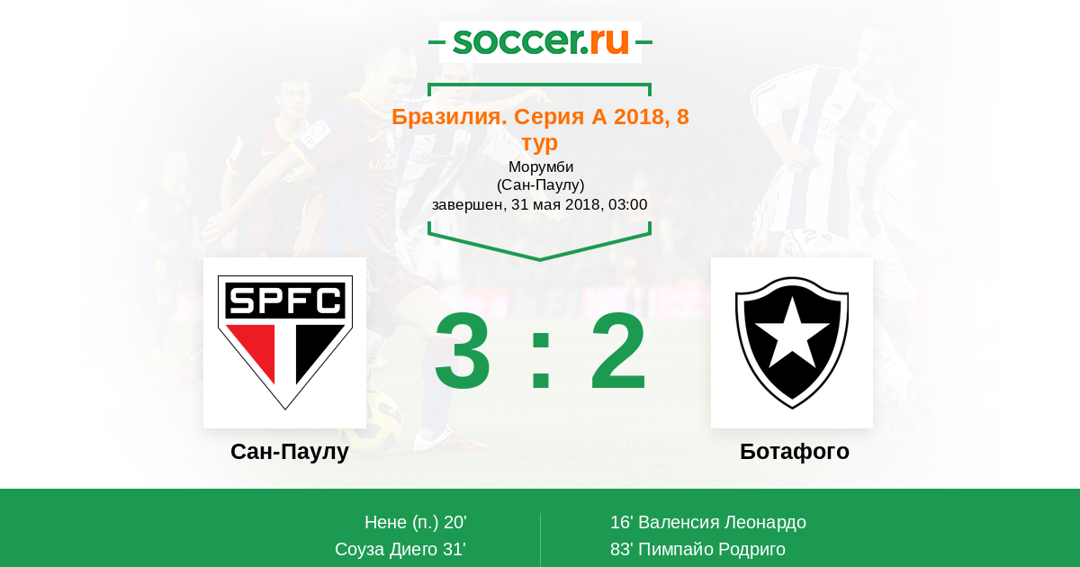 Сан-Паулу - Ботафого: обзор матча 31 мая 2018