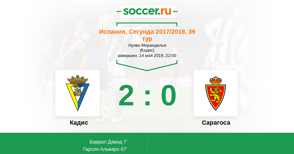 Кадис - Сарагоса: обзор матча 14 мая 2018
