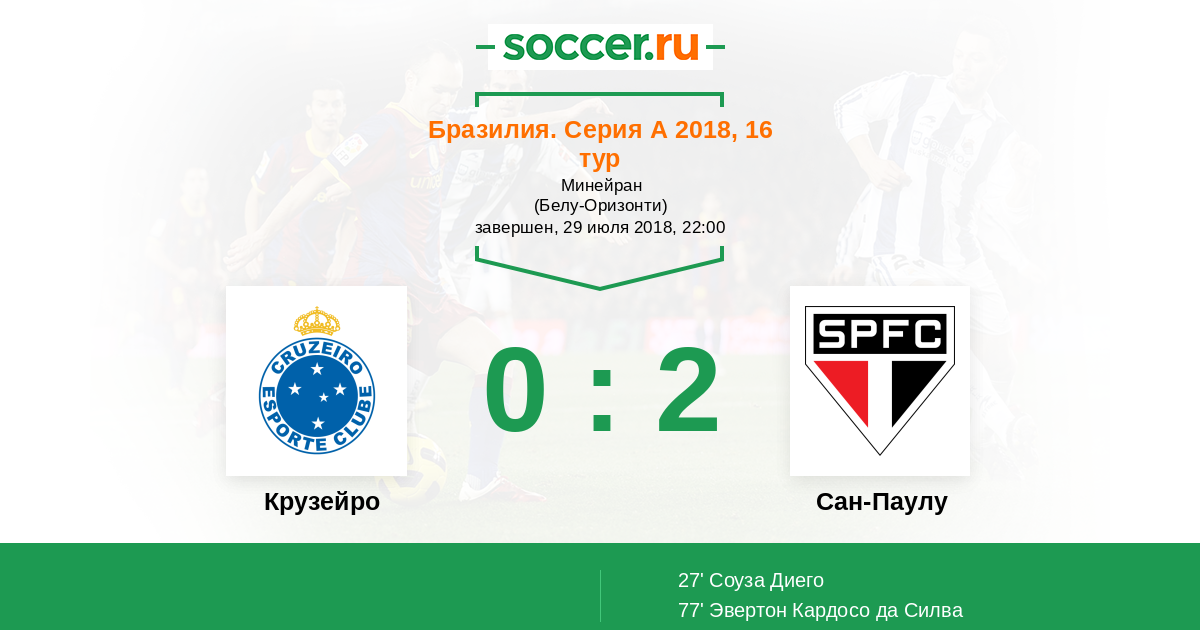 Крузейро - Сан-Паулу: обзор матча 29 июля 2018