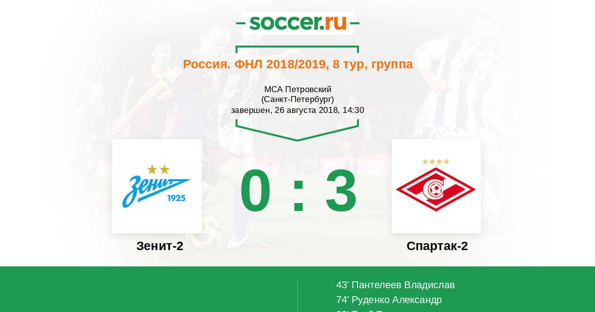 Зенит-2 - Спартак-2: обзор матча 26 августа 2018