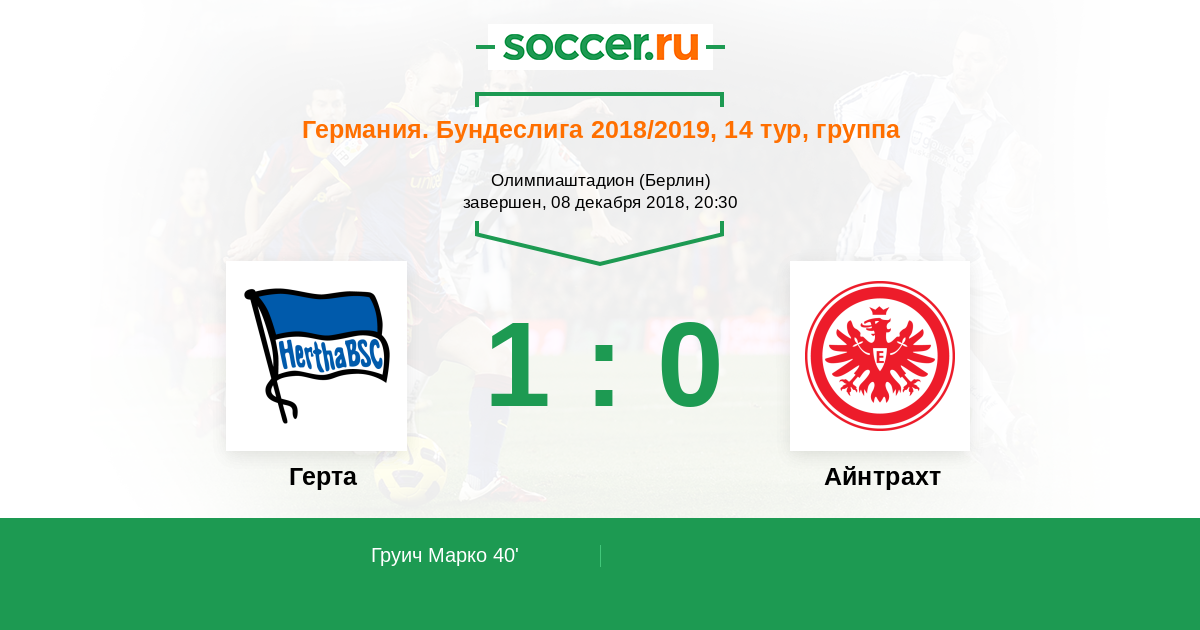 Герта - Айнтрахт: обзор матча 8 декабря 2018