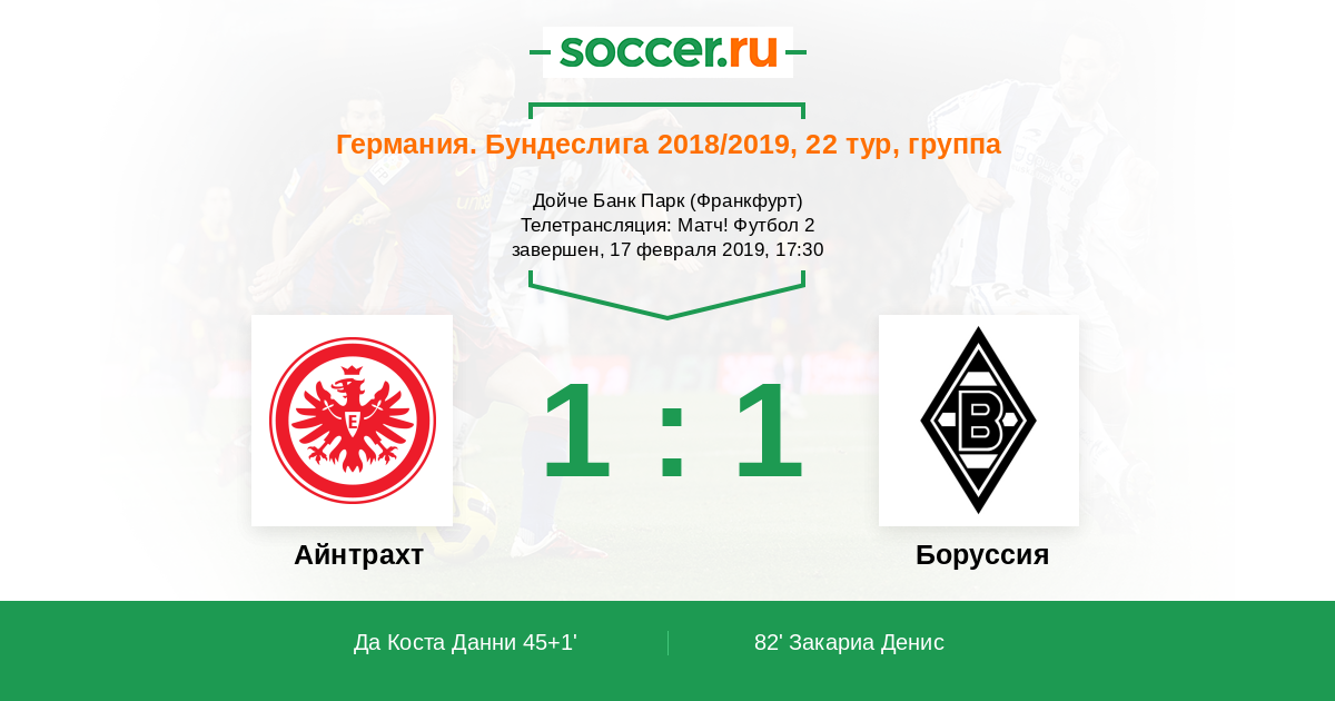Айнтрахт - Боруссия: обзор матча 17 февраля 2019
