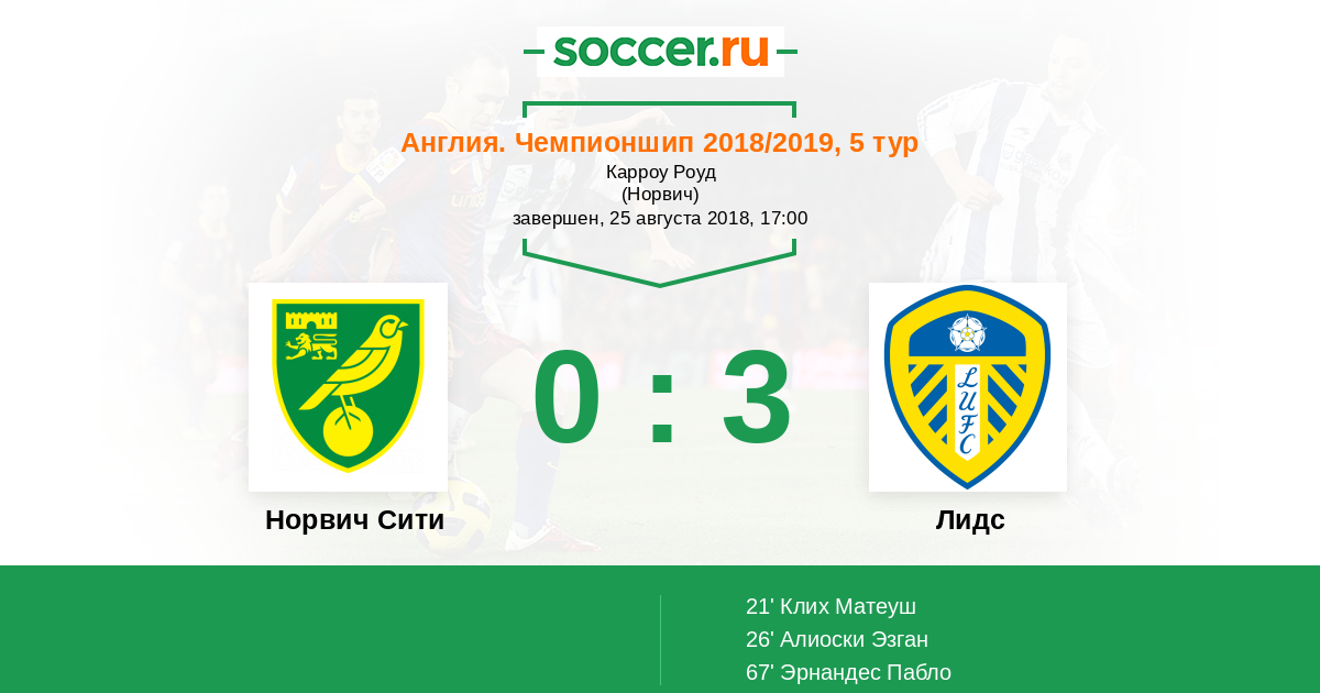 Норвич Сити - Лидс: обзор матча 25 августа 2018