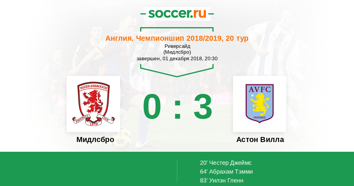 Мидлсбро - Астон Вилла: обзор матча 1 декабря 2018