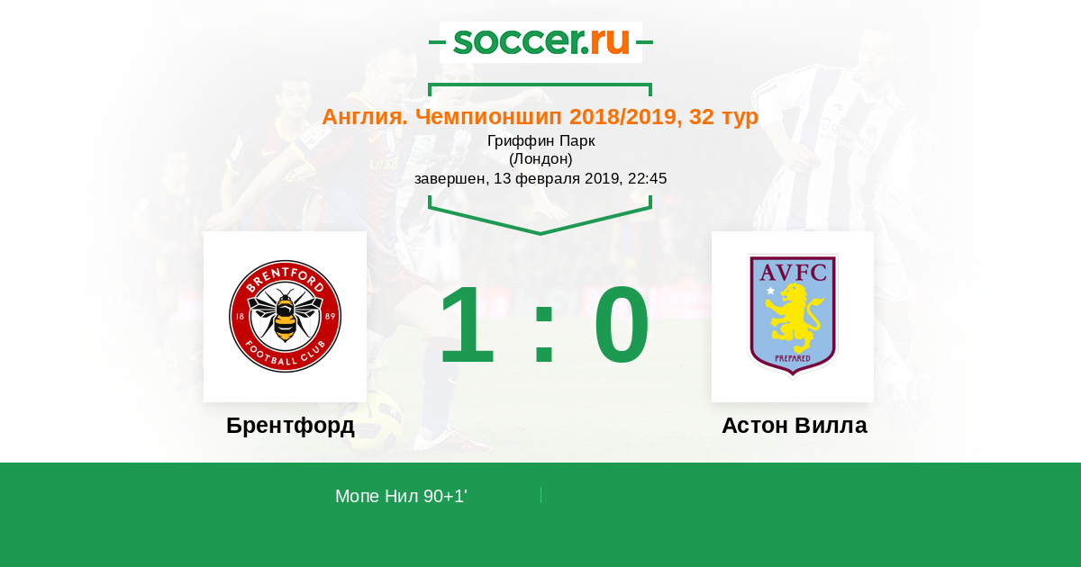 Брентфорд - Астон Вилла: обзор матча 13 февраля 2019