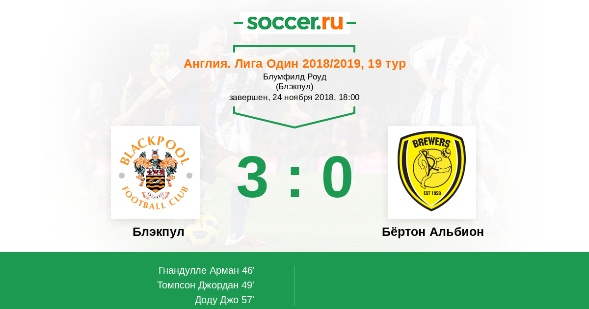 Блэкпул - Бёртон Альбион: обзор матча 24 ноября 2018