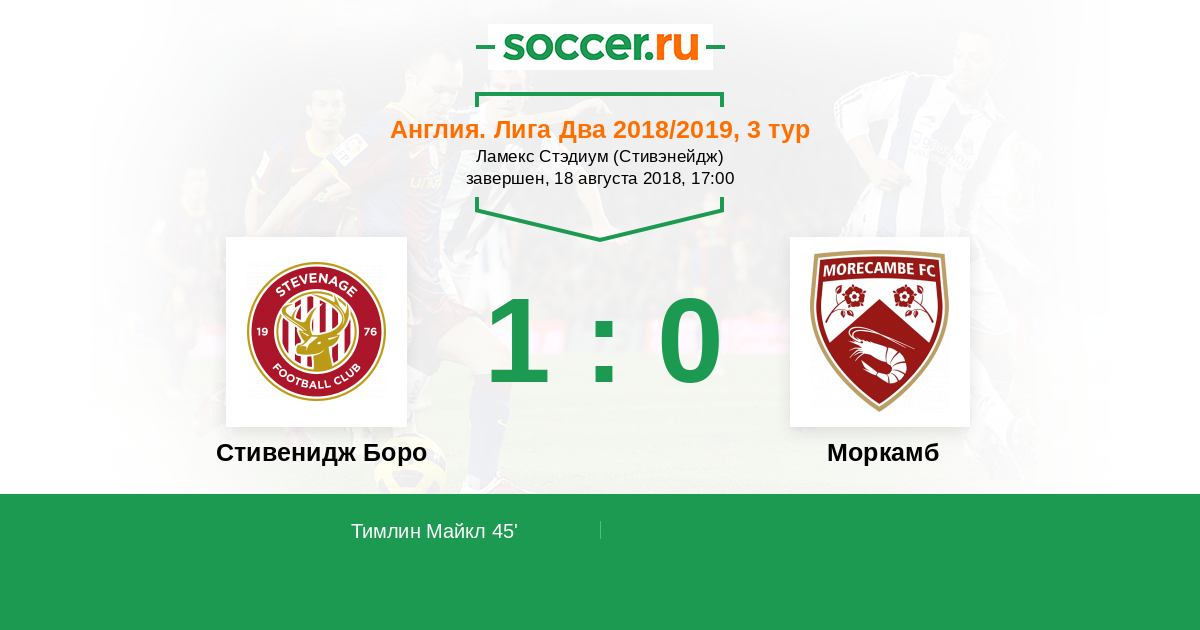 Стивенидж Боро - Моркамб: обзор матча 18 августа 2018