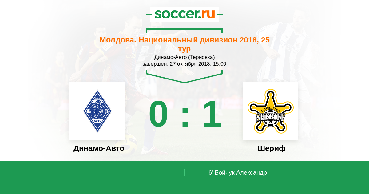 Динамо-Авто - Шериф: обзор матча 27 октября 2018