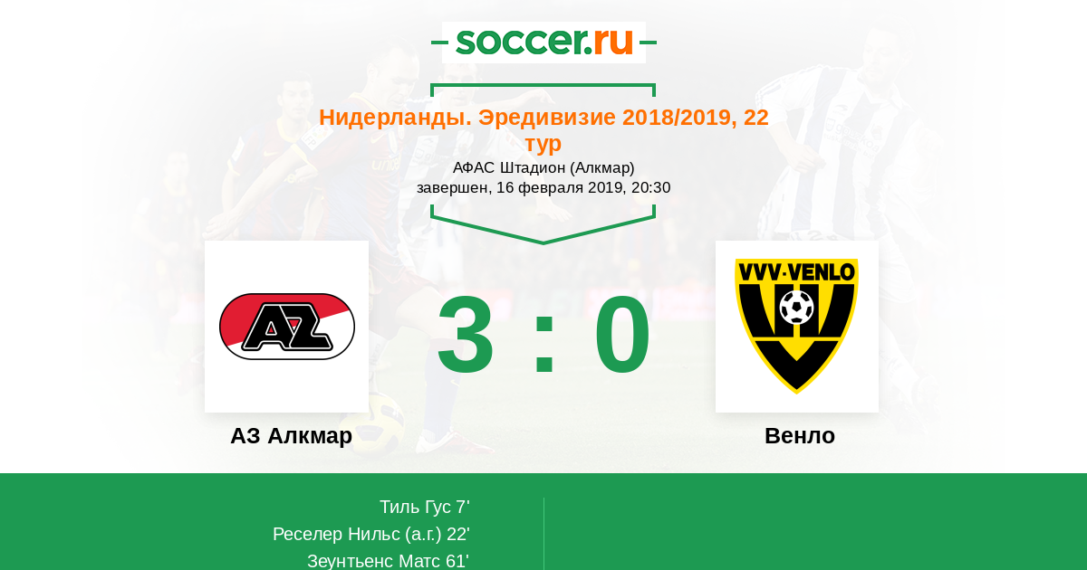 АЗ Алкмар - Венло: обзор матча 16 февраля 2019