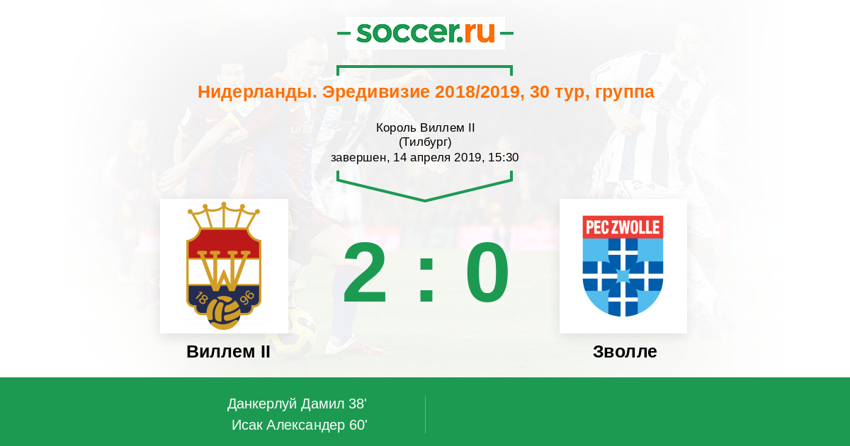 Виллем II - Зволле: обзор матча 14 апреля 2019