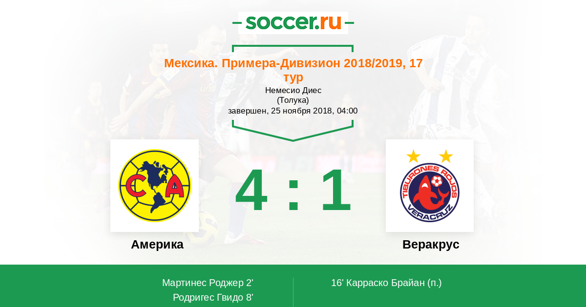 Америка - Веракрус: обзор матча 25 ноября 2018