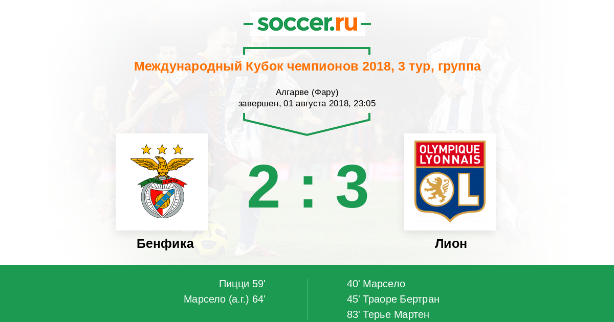 Бенфика - Лион: обзор матча 1 августа 2018