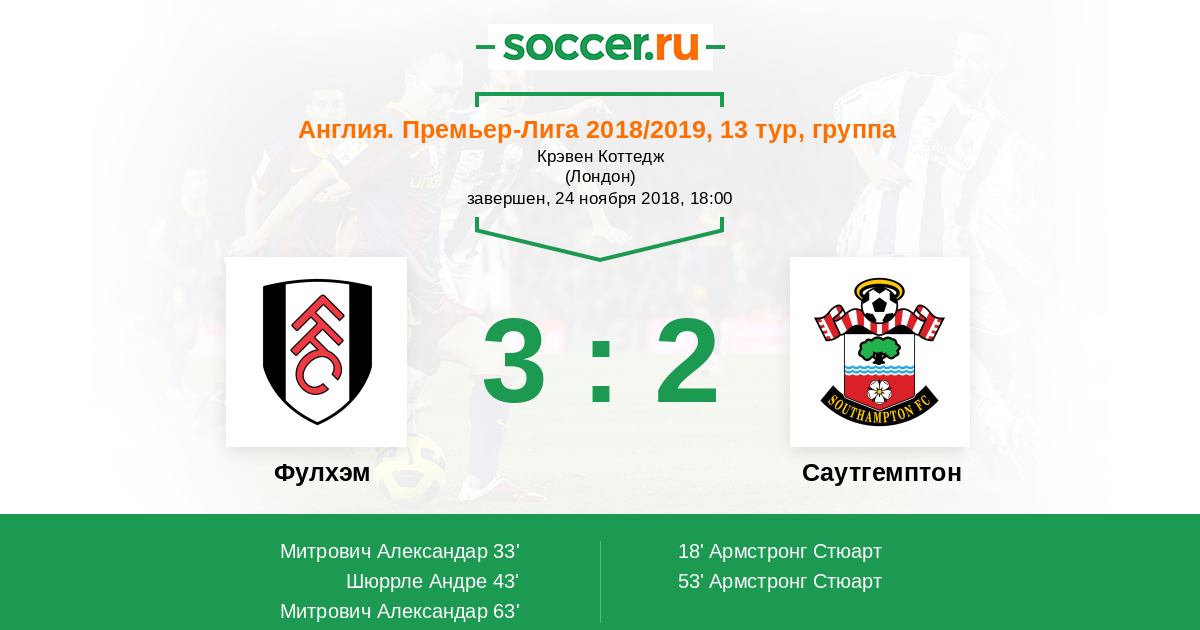| 20. | Фулхэм | 19 | 1 | 2 | 16 | 2 | 12:45 | 5 |