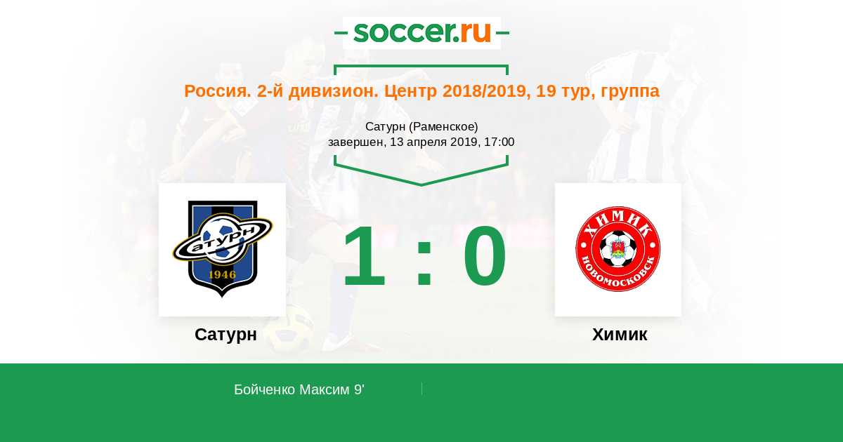 Сатурн - Химик: обзор матча 13 апреля 2019