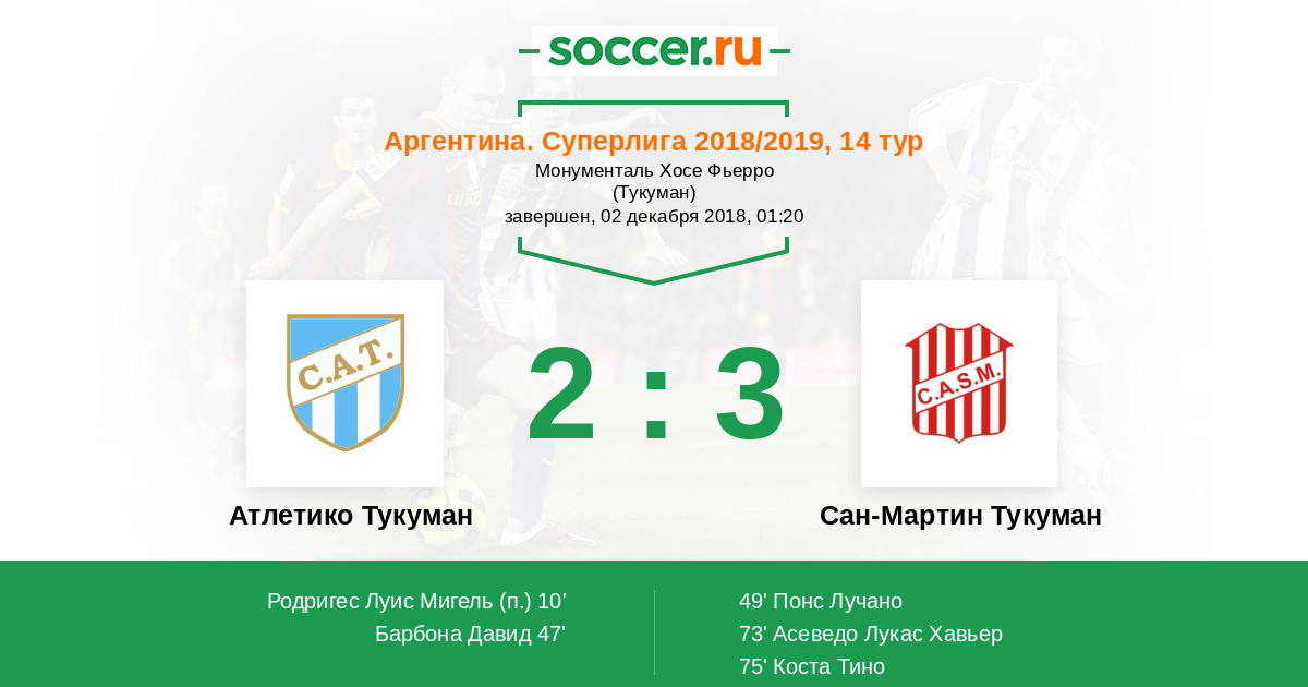 Атлетико Тукуман - Сан-Мартин Тукуман: обзор матча 2 декабря 2018