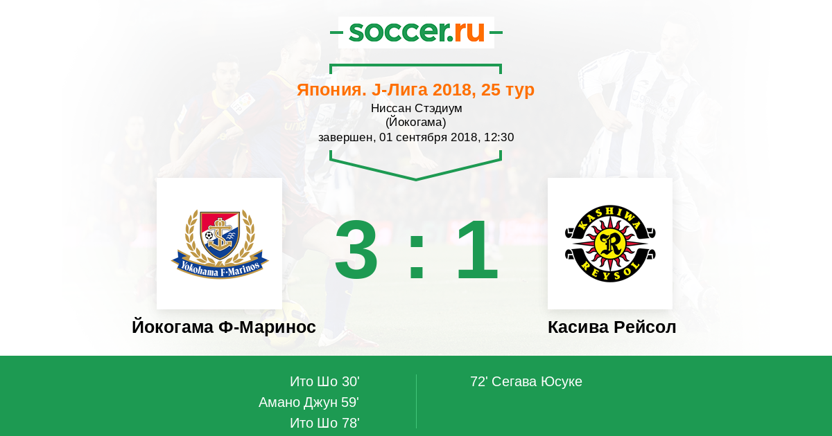 Йокогама Ф-Маринос - Касива Рейсол: обзор матча 1 сентября 2018