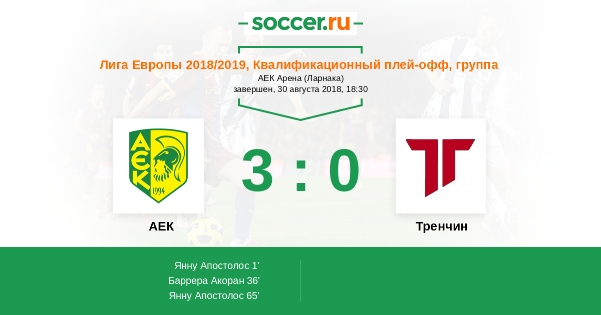АЕК - Тренчин: обзор матча 30 августа 2018