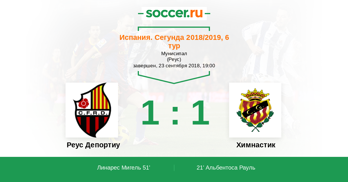 Реус Депортиу - Химнастик: обзор матча 23 сентября 2018