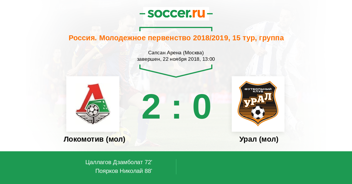 Локомотив (мол) - Урал (мол): обзор матча 22 ноября 2018