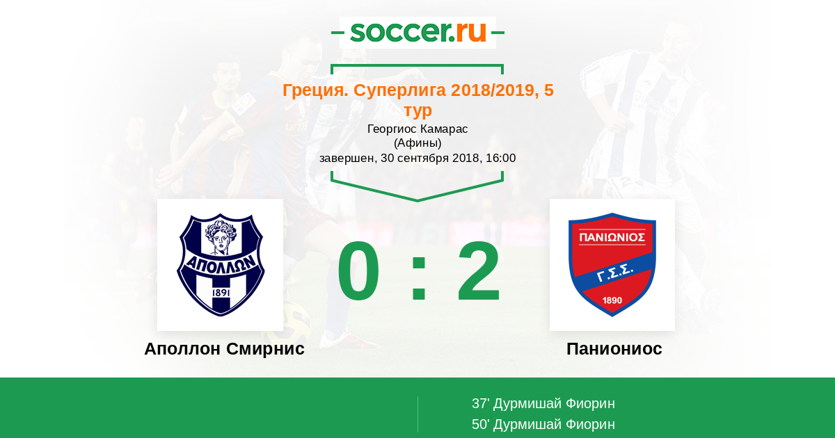 Аполлон Смирнис - Паниониос: обзор матча 30 сентября 2018