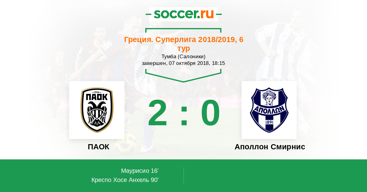 ПАОК - Аполлон Смирнис: обзор матча 7 октября 2018