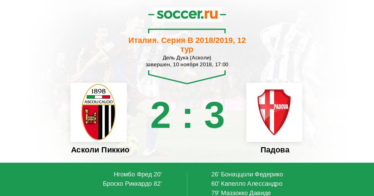 Асколи Пиккио - Падова: обзор матча 10 ноября 2018