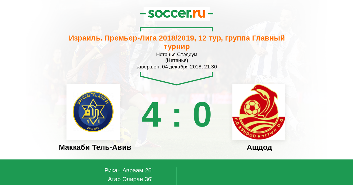 Маккаби ТА | 26 | 20 | 6 | 0 | 14 | 57:12 | 66 |