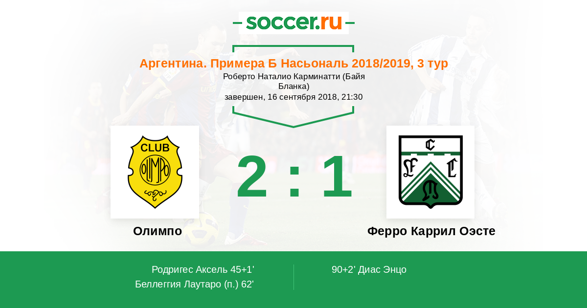 Олимпо - Ферро Каррил Оэсте: обзор матча 16 сентября 2018