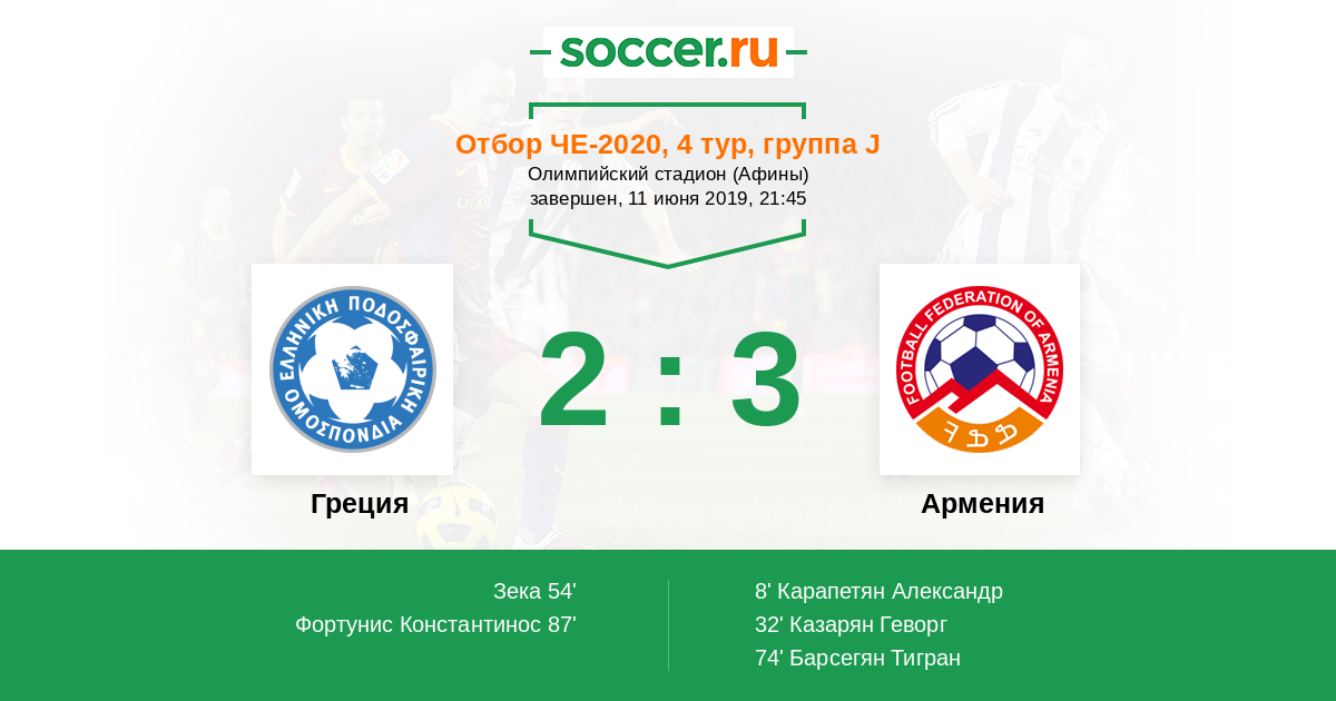 Греция - Армения: обзор матча 11 июня 2019