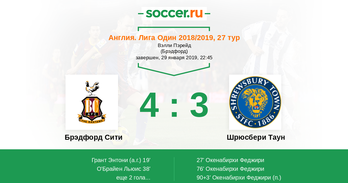 Брэдфорд Сити - Шрюсбери Таун: обзор матча 29 января 2019