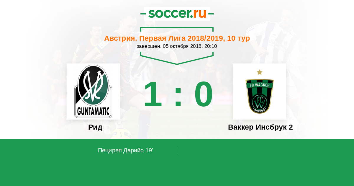 Рид - Ваккер Инсбрук 2: обзор матча 5 октября 2018