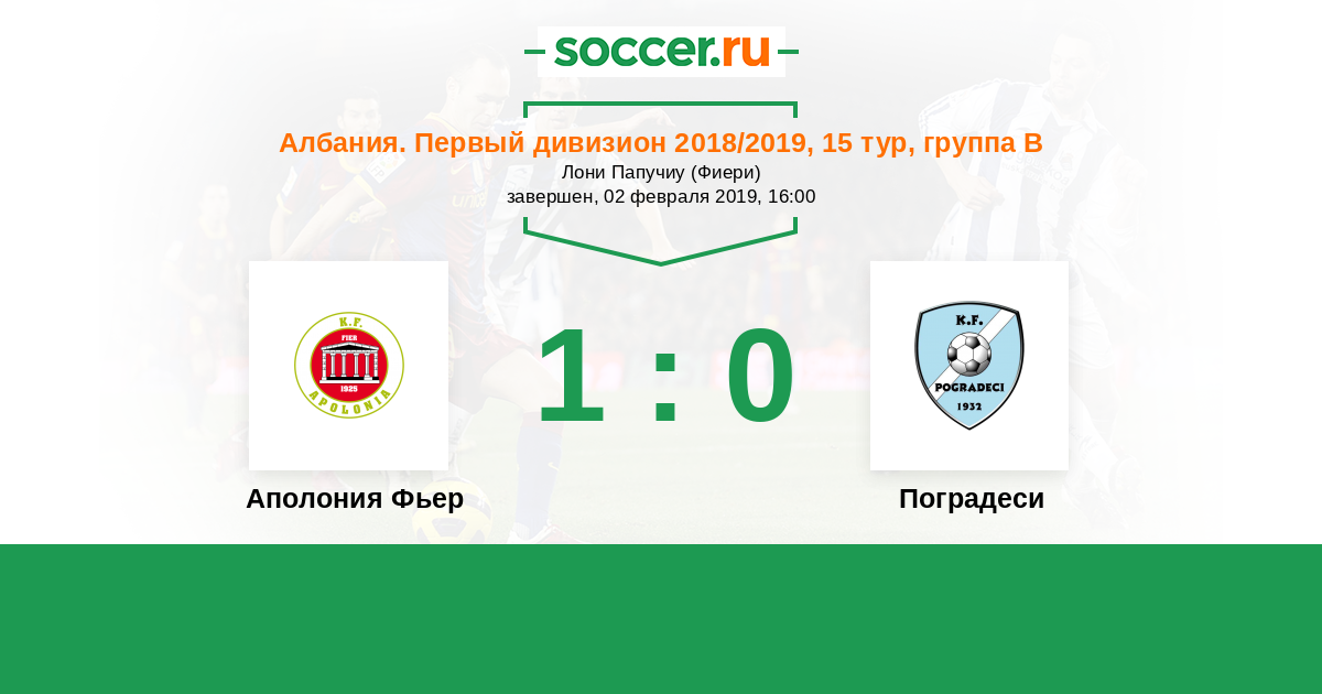 Аполония Фьер - Поградеси: обзор матча 2 февраля 2019